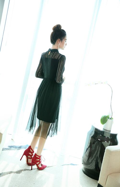「大特価」 新作♪キュート レース チュール 切替 ワンピースT6577