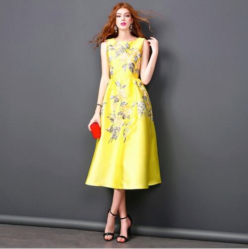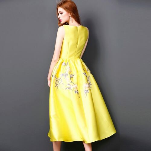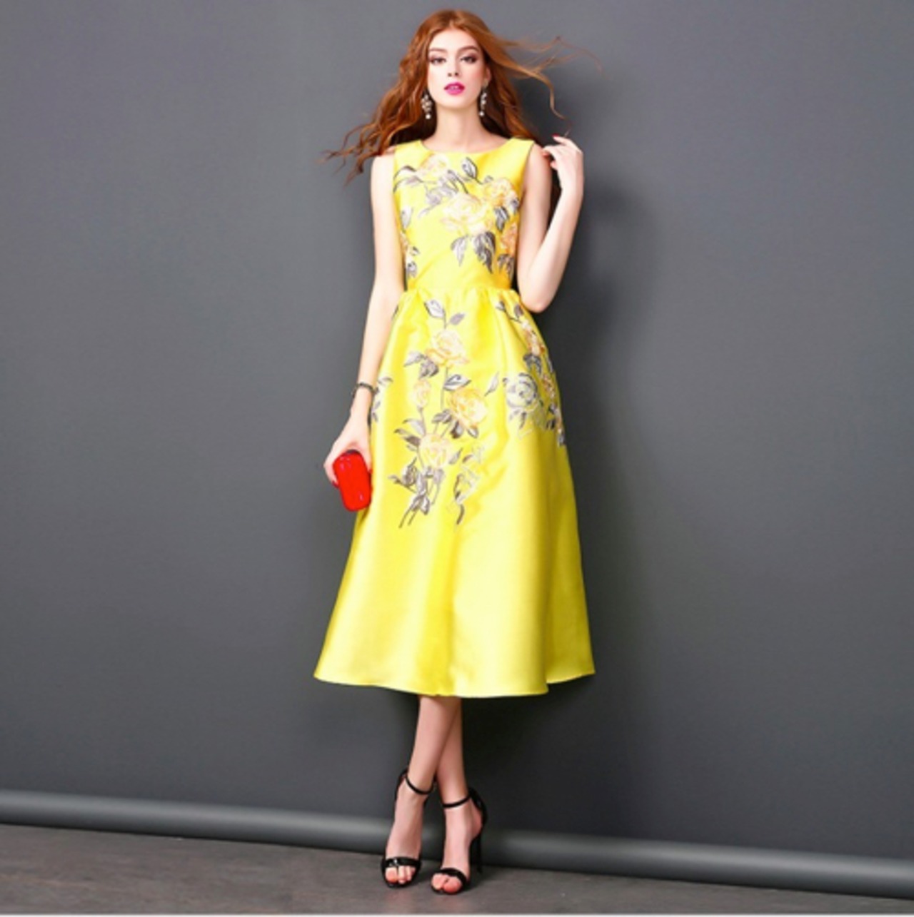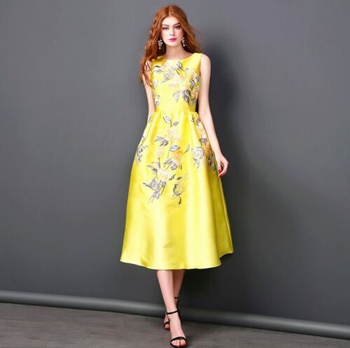 「大特価」 キュート フラワー ノースリーブ ミディ丈 ワンピースp2727