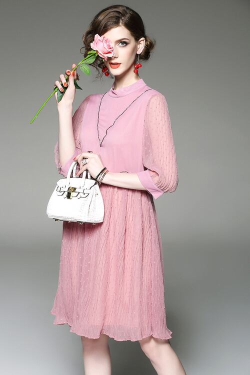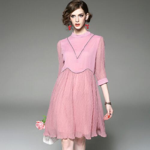 「大特価」 新作♪キュート 切替 シフォン ビーズ 2色ワンピースp2767
