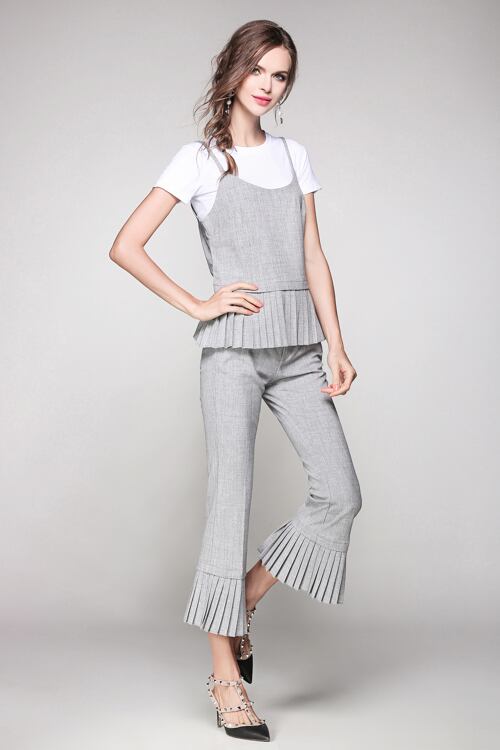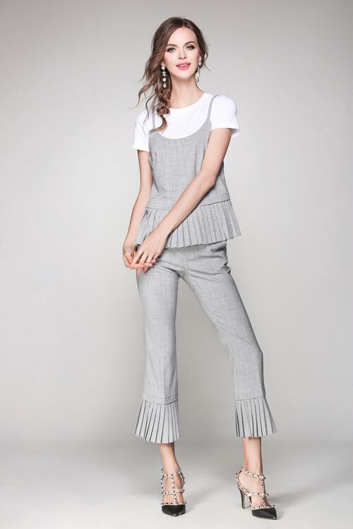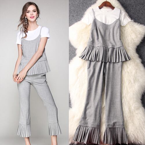 「大特価」 新作♪ プリーツペプラム トップス*パンツセットアップT6695