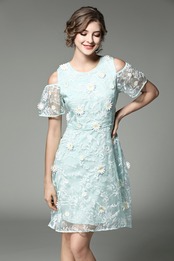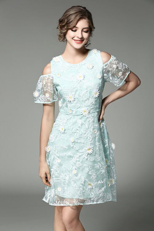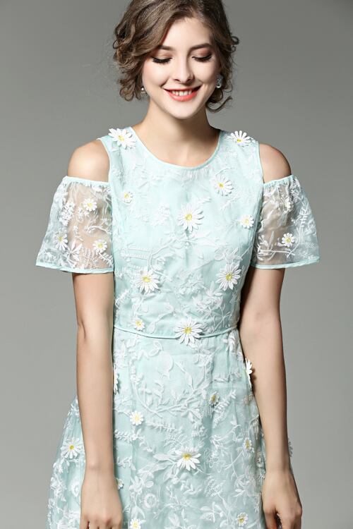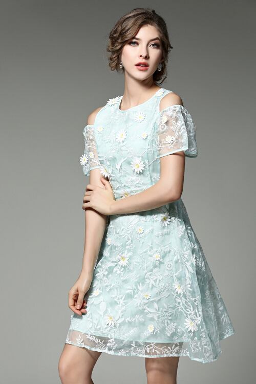 「大特価」 おしゃれ オフショルダー お花 刺繍 ワンピースT6699