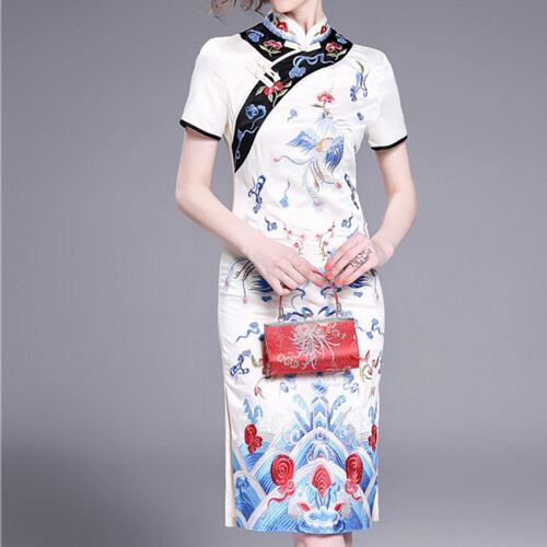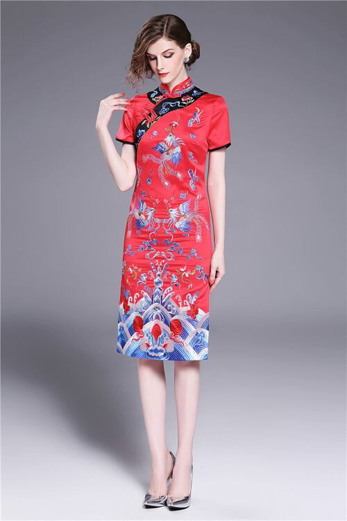 「大特価」 エレガンス 半袖 刺繍2色 チャイナドレス風 ワンピースp2842