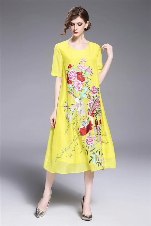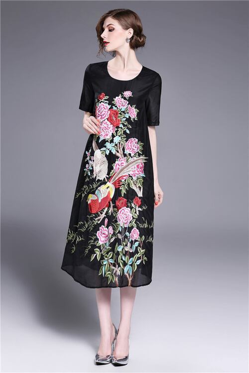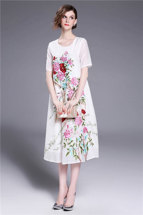 「大特価」 おしゃれ 半袖 刺繍 3色 ワンピースp2843