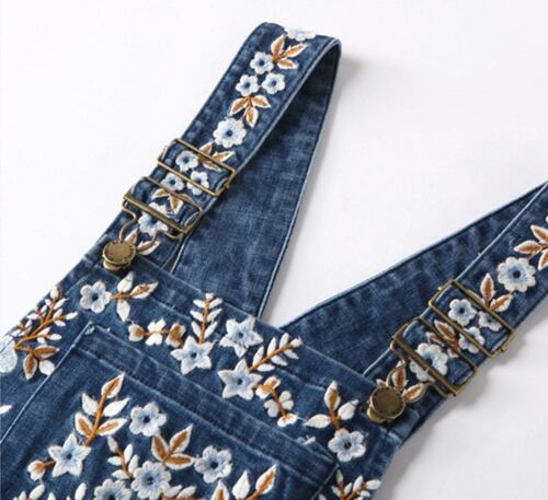 「大特価」 キュートデニム ノースリーブ刺繍 サロペットワンピースp2848