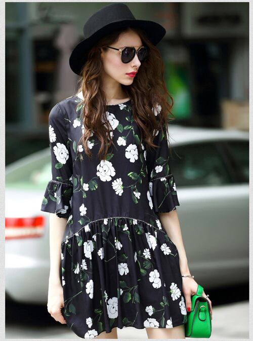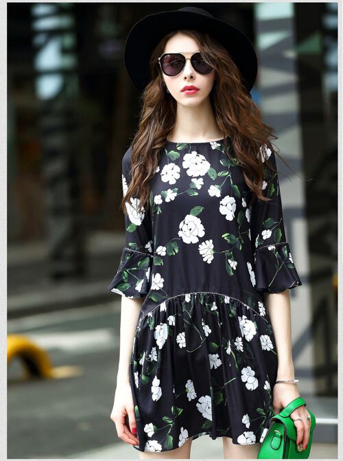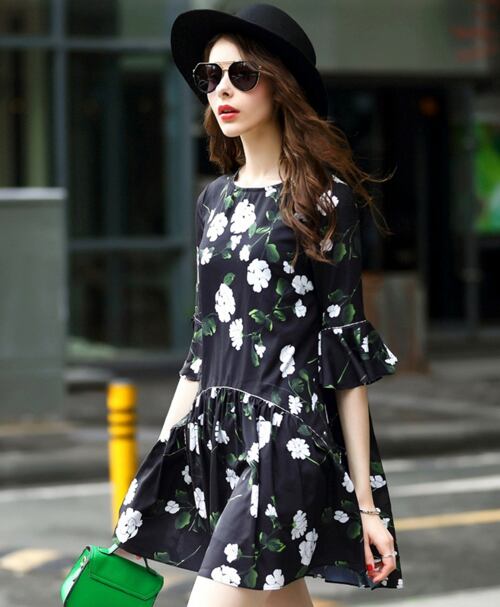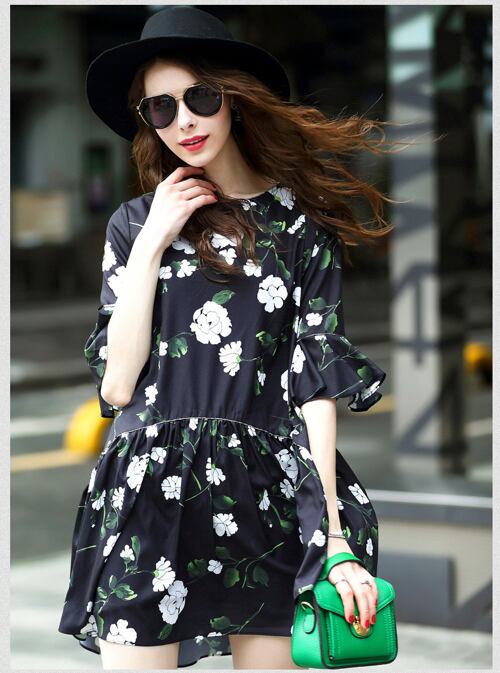 「大特価」 キュート フラワープリント ビーズ ワンピース ドレスp2977
