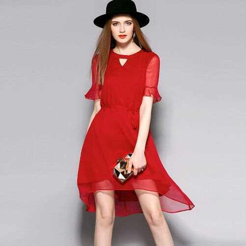 「大特価」 新作♪モノカラー アシメトリー 2色 ワンピース ドレスp3033