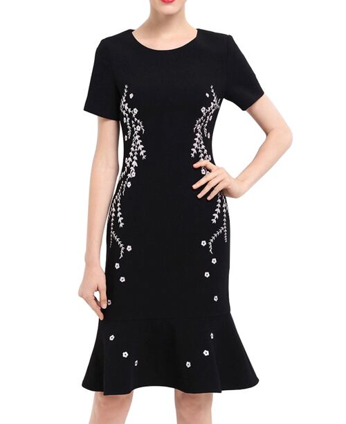 「大特価」 新作♪エレガンス 刺繍 半袖 フレア ドレスp3229