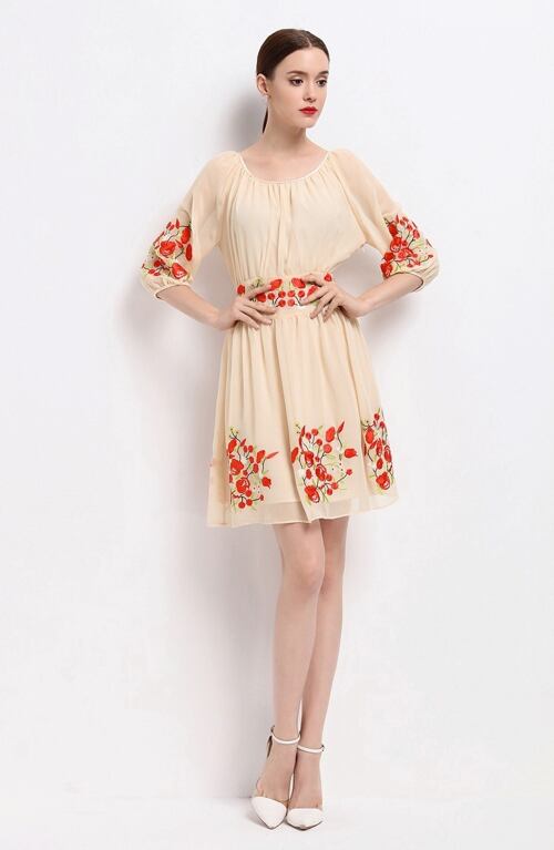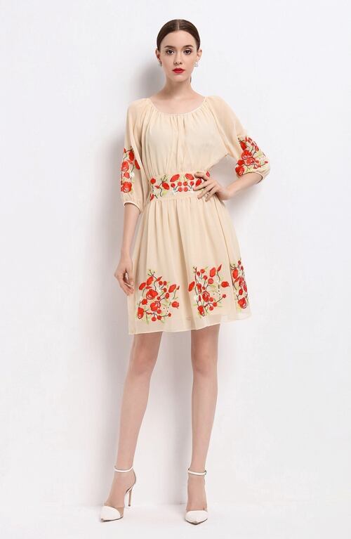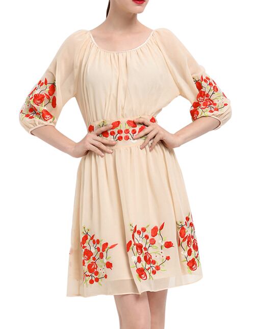 「大特価」 新作♪キュート 7分袖 刺繍 フラワー ワンピース p3235