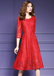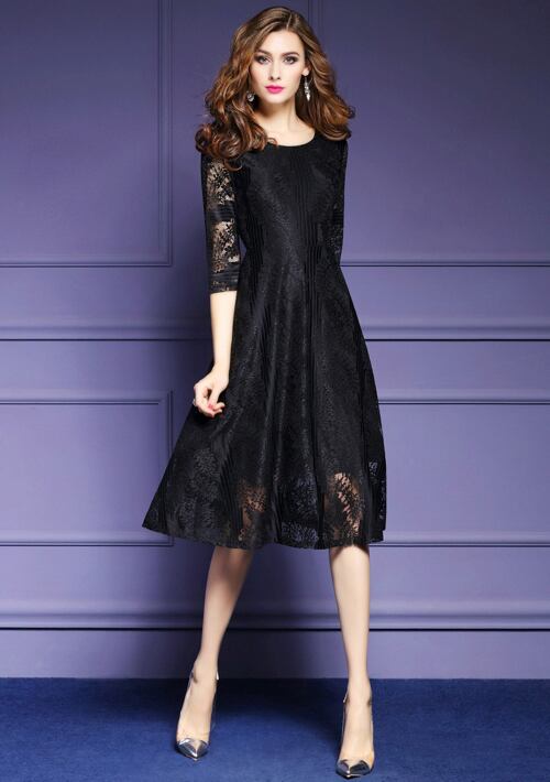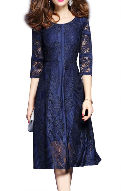 「大特価」 総レース 7袖 スリムウエスト ワンピース 3色 p3265