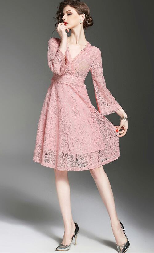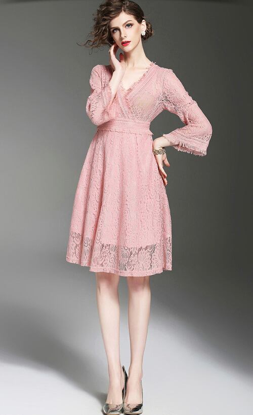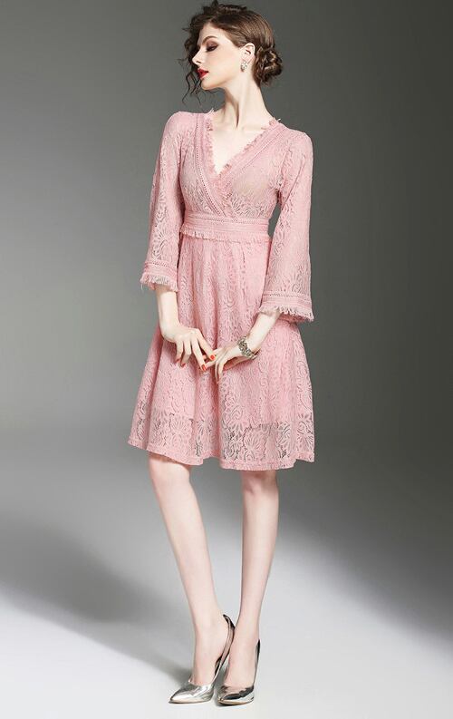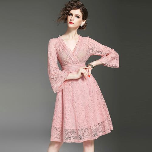 「大特価」 新作 総レース Vネック 結婚式 2色 ワンピース p3069
