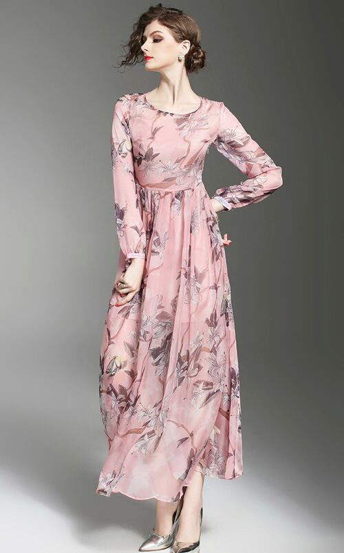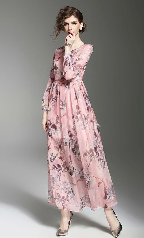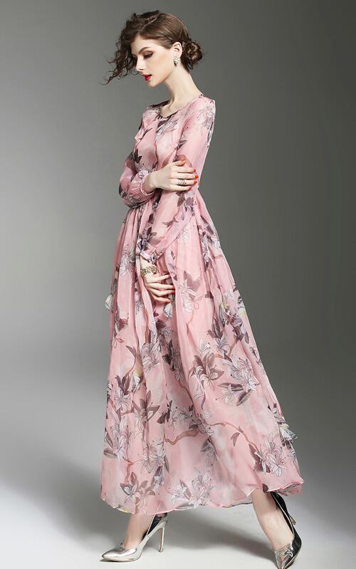 「大特価」 新作 シフォン プリント マキシ ワンピース ドレスp3073