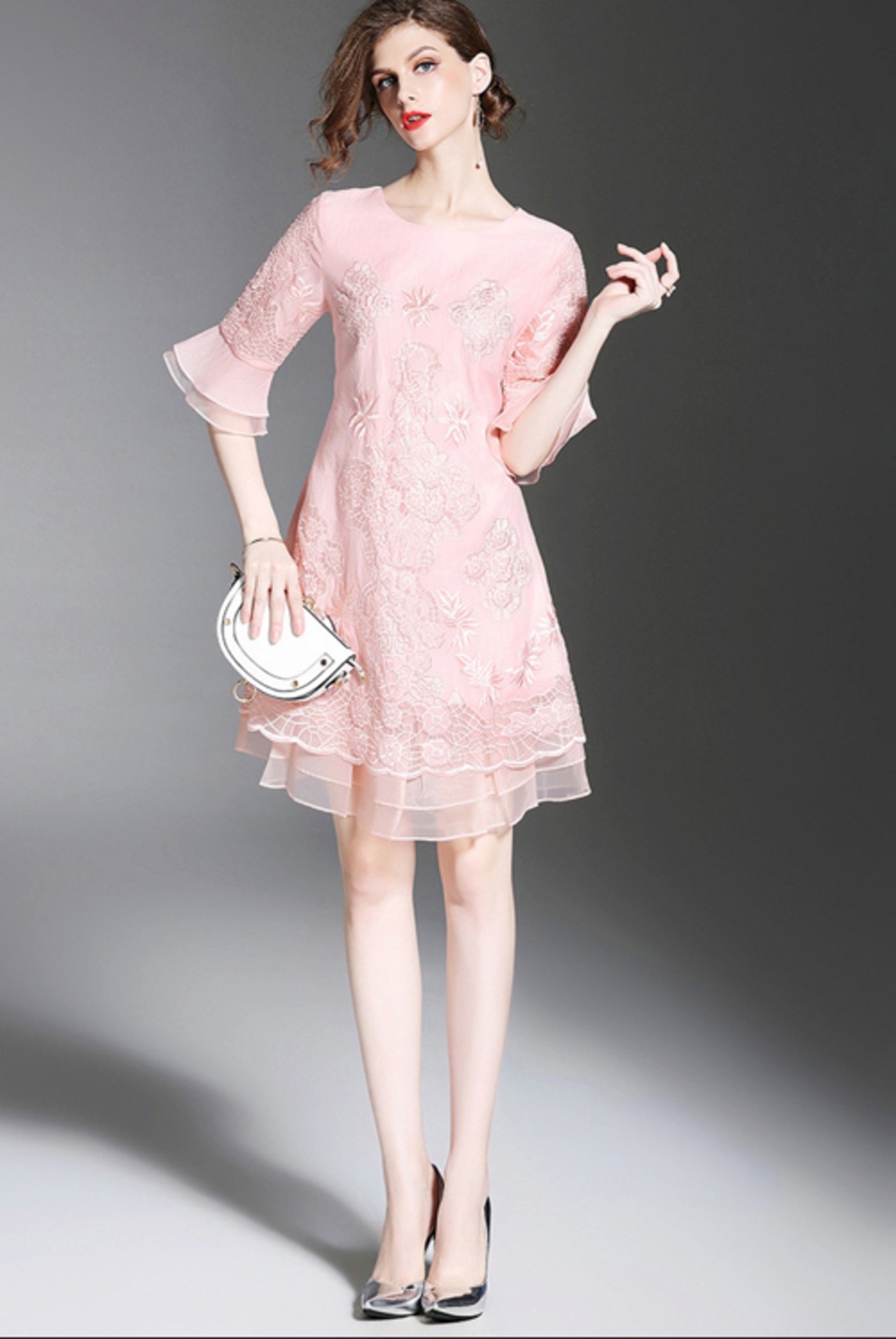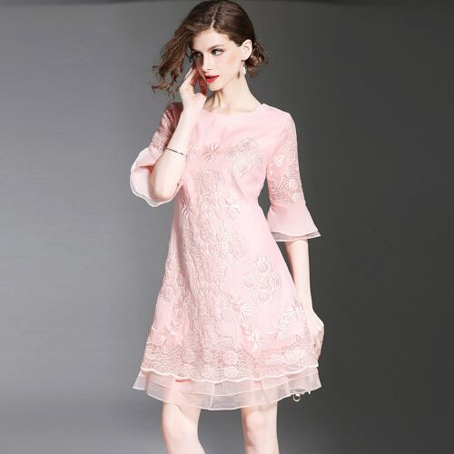 「大特価」 新作 半袖 刺繍 2色 結婚式 ワンピース ドレスp3099