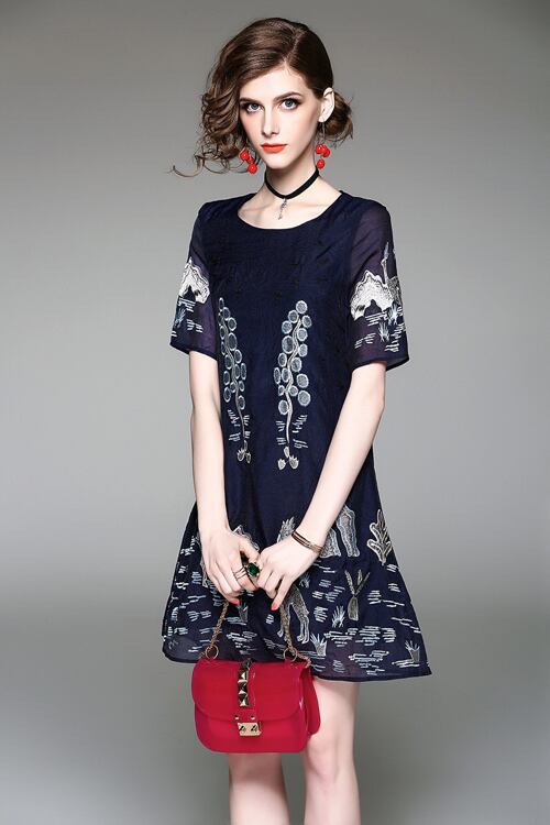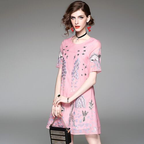 「大特価」 新作♪ 半袖 刺繍 3色 ワンピース ドレスp3171