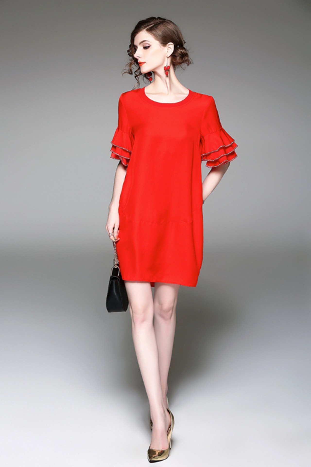 「大特価」 SS新作 シンプル フリル 2色 結婚式 ワンピース p3185