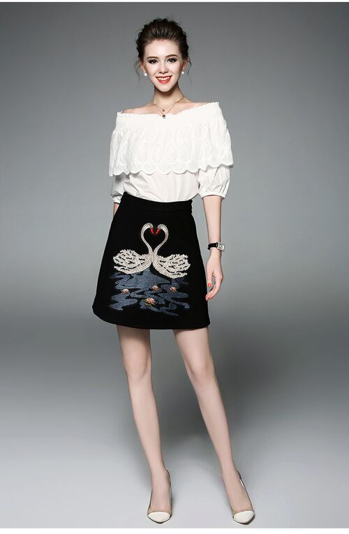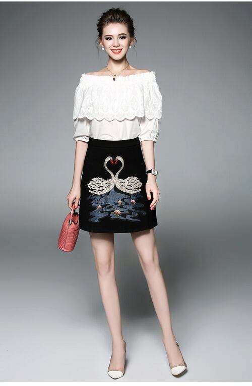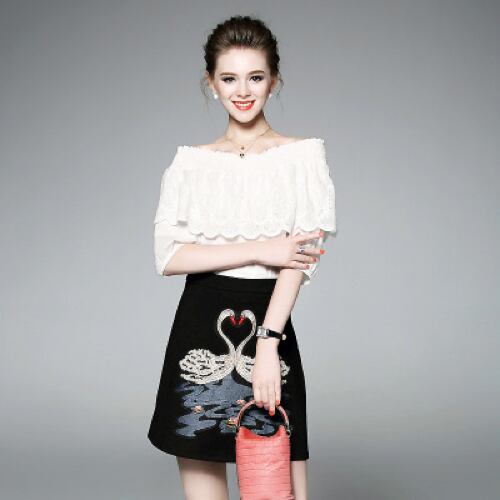 「大特価」 新作♪キュート トップス*スカート 刺繍 セットアップB0247