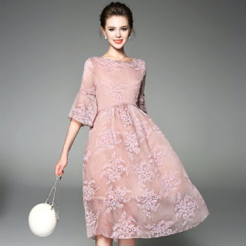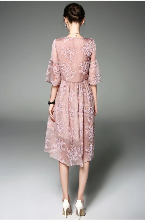 「大特価」 新作 プリント フリル 結婚式 ミディ丈 ワンピースB0249