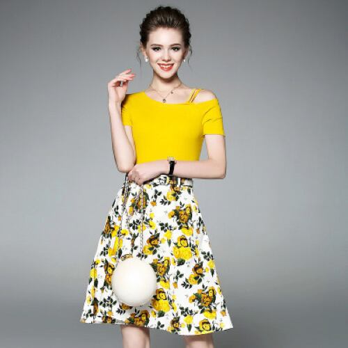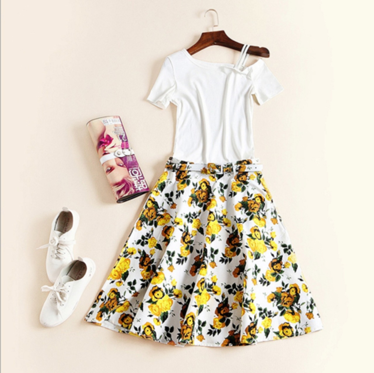 「大特価」 新作♪キュート Tシャツ*スカート 2色 セットアップB0262