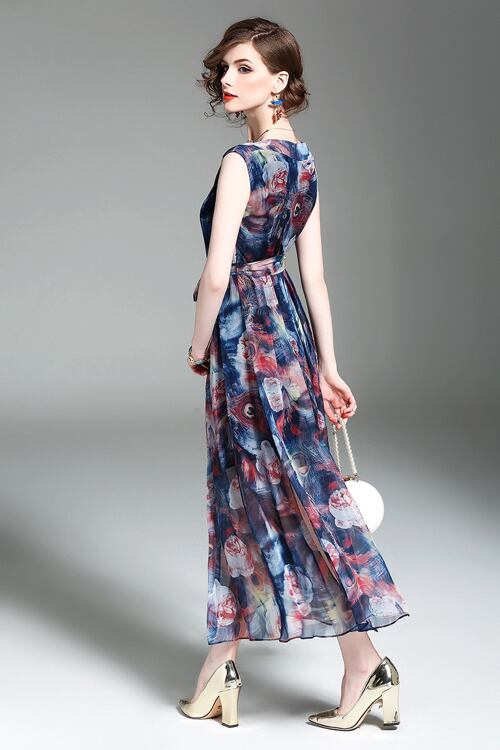 「大特価」 ノースリーブ フラワー プリント 大人♪ワンピースp3267