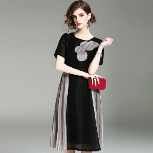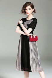 「大特価」 エレガント 半袖 バイカラー プリーツ ワンピースp3320