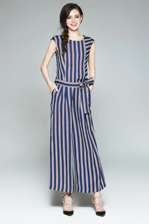 「大特価」 新作♪ストライプ トップス*パンツ セットアップT6950