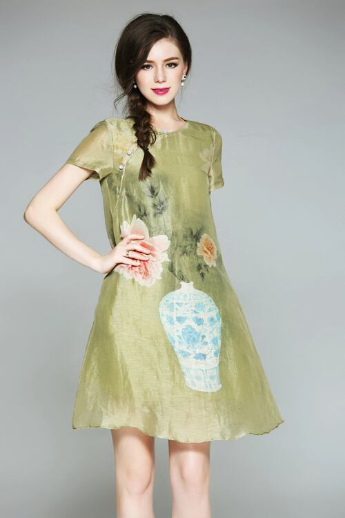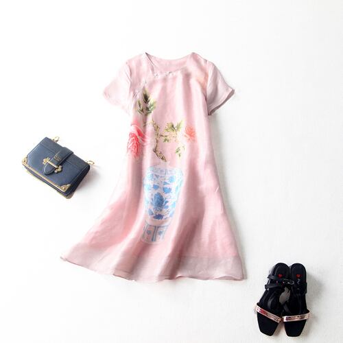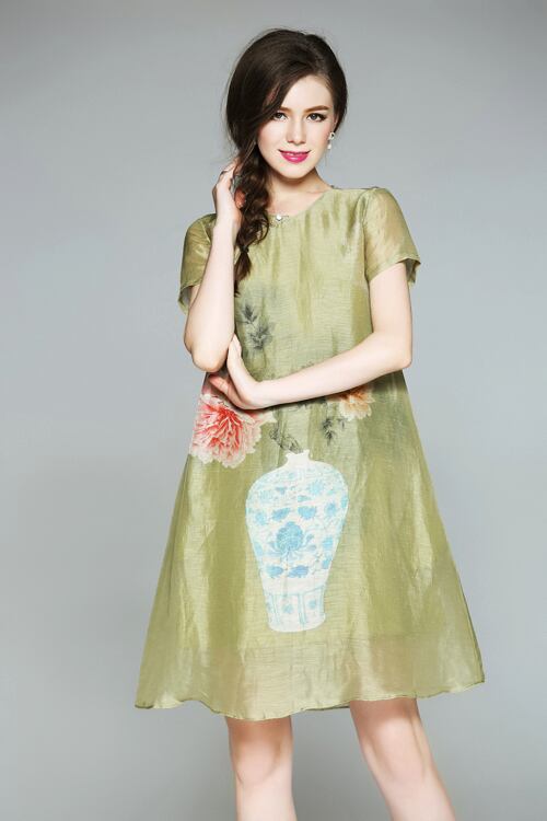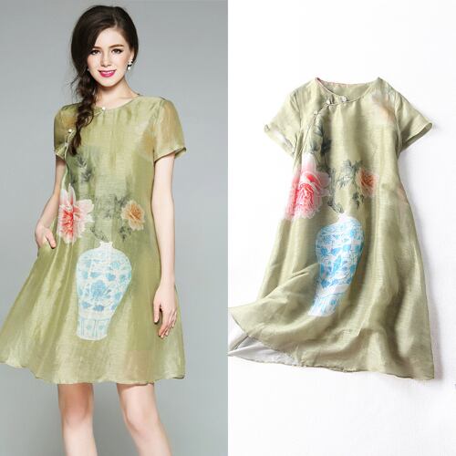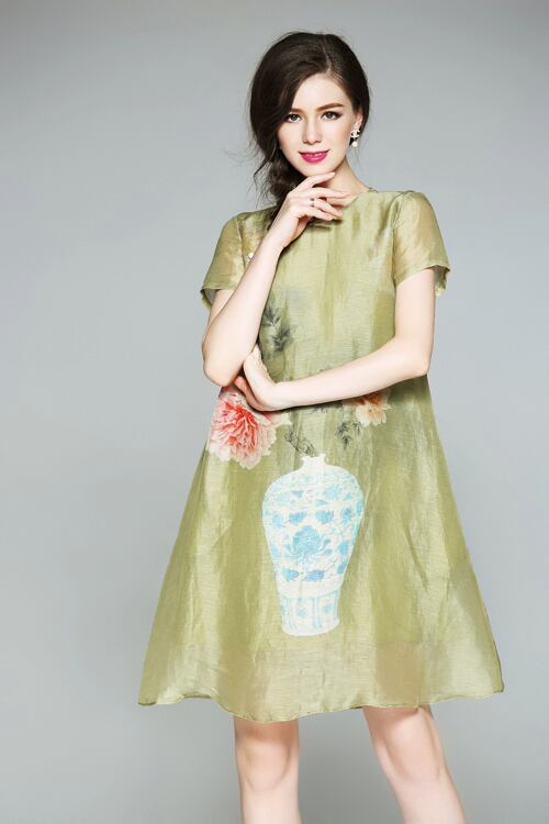 「大特価」 新作 半袖 プリント 2色 ワンピースT6953