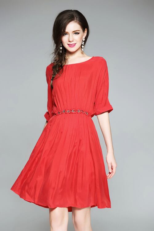 「大特価」 新作 エレガンス モノカラー 半袖 2色 ワンピースT6961