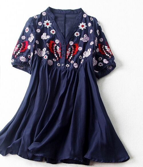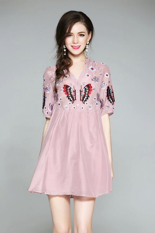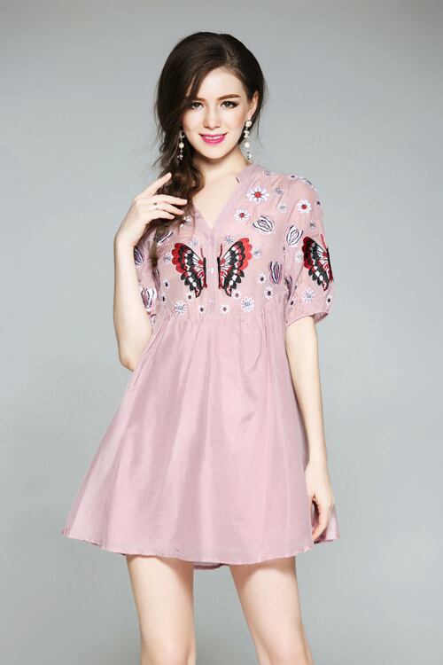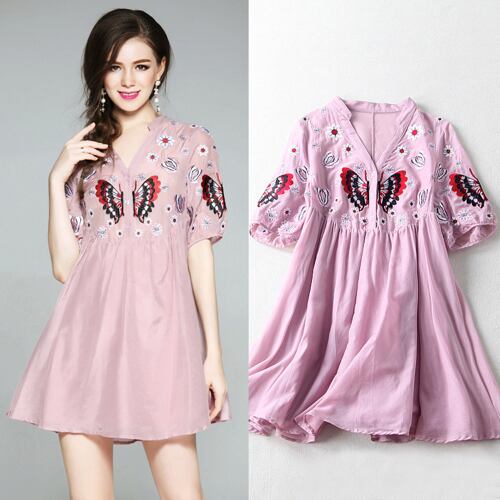 「大特価」 キュート 半袖 刺繍 2色 ワンピースT6924