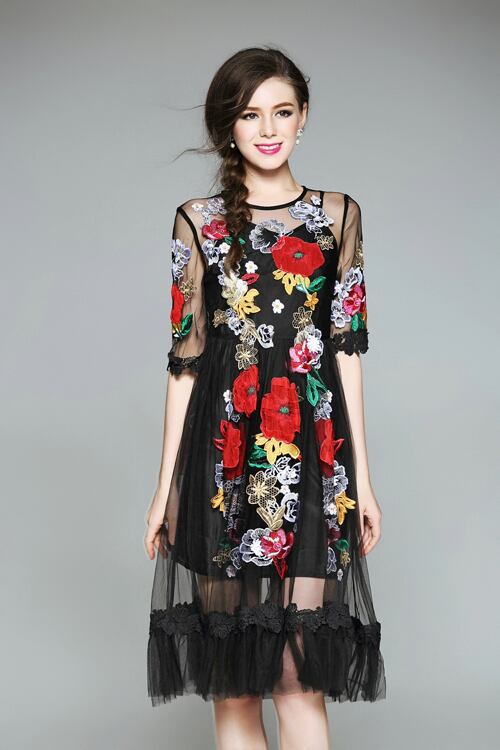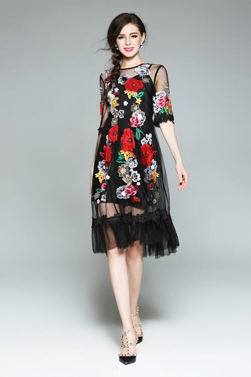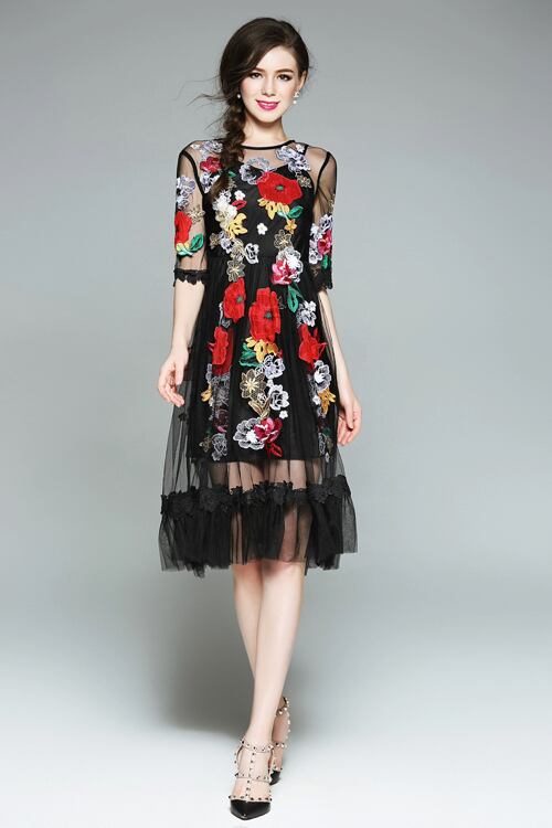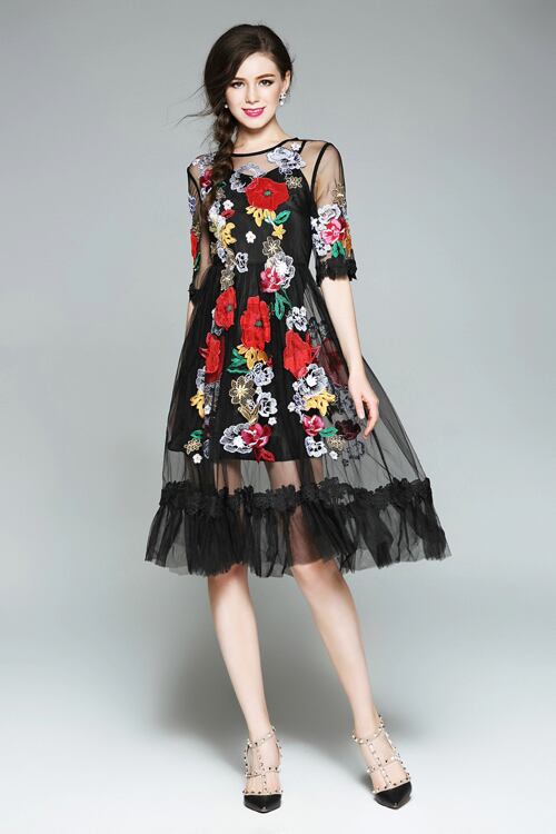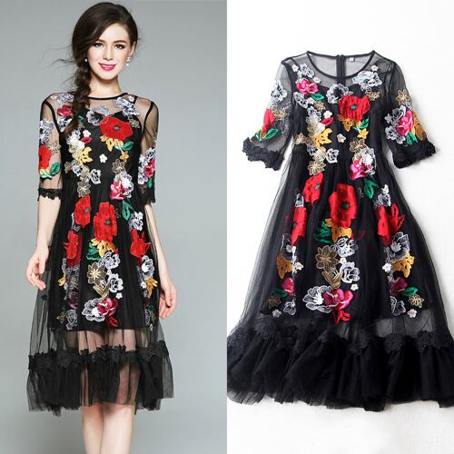 「大特価」 上品 チュール 刺繍 半袖 結婚式 二次会 ワンピースT6987