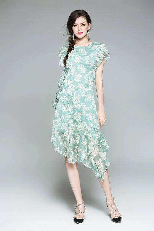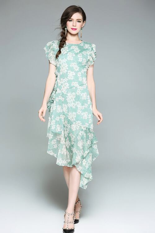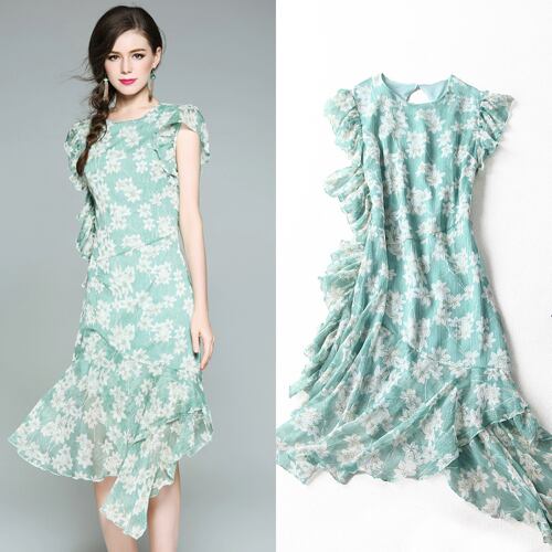 「大特価」 おしゃれ フリル アシメドリー 2色 ワンピースT6993