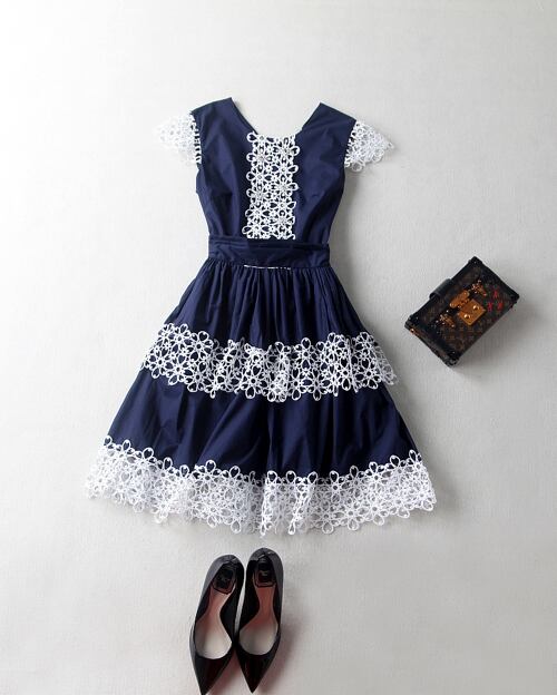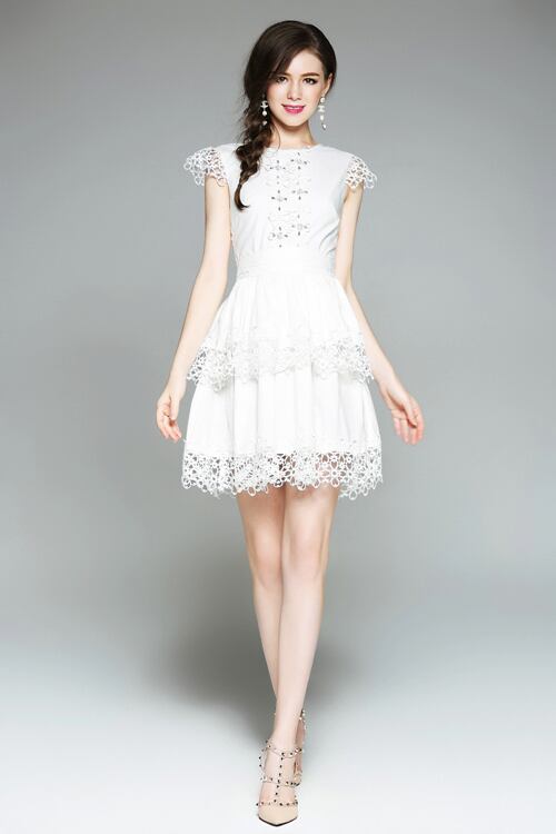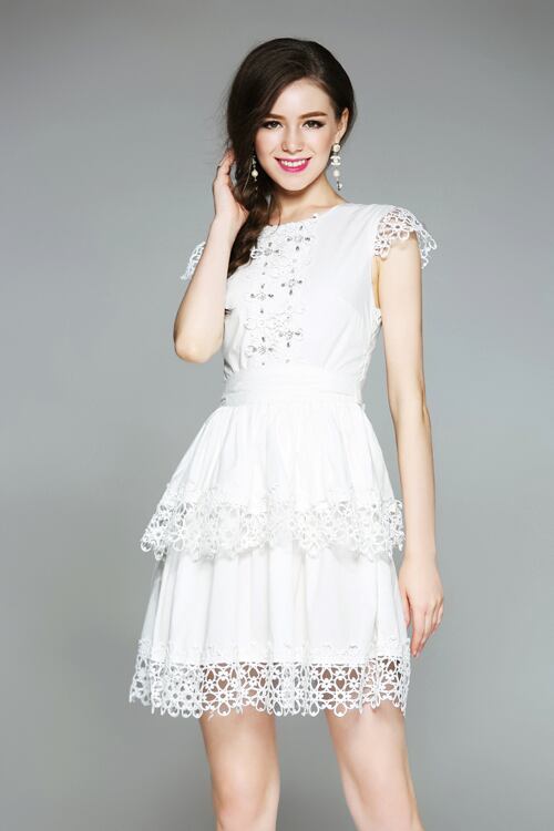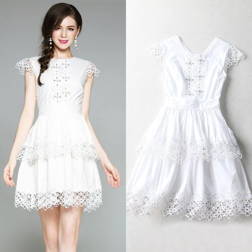 「大特価」 おしゃれ レース 切替 ビジュー 2色 ワンピースT6996