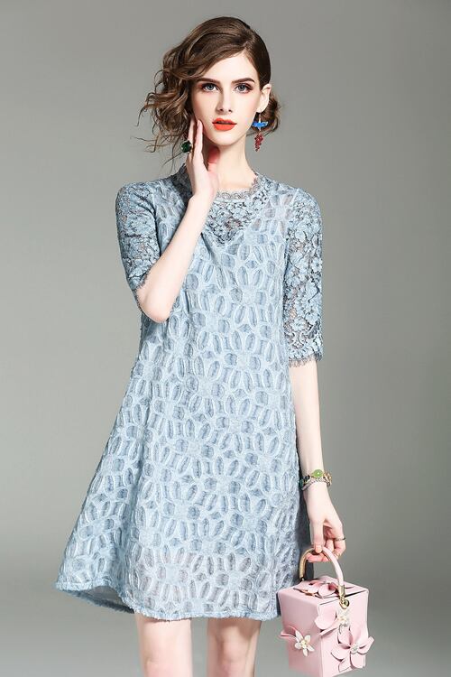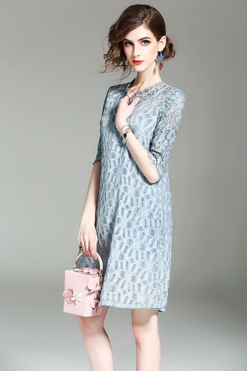 「大特価」 上品 レース 切替 半袖 結婚式に ワンピースp3349