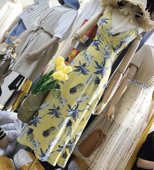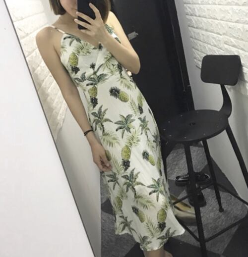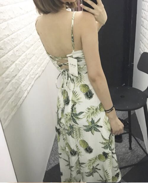「大特価」 プリント Vネック バックリボン 2色 ワンピース