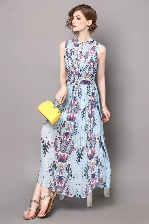 「大特価」 おしゃれ シフォン プリント プリーツ マキシ ワンピース