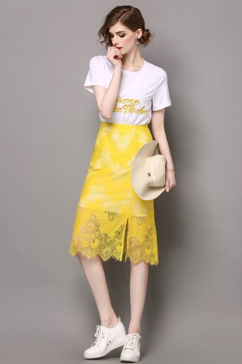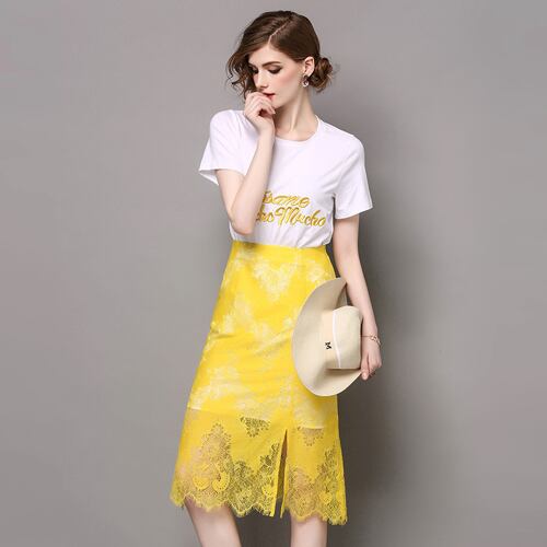 「大特価」 新作♪キュート Tシャツ*スカート レース セットアップ