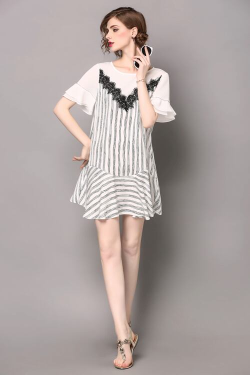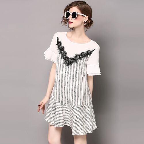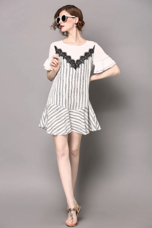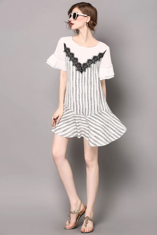 「大特価」 キュート ストライプ 切替 フリル 2色 ワンピース