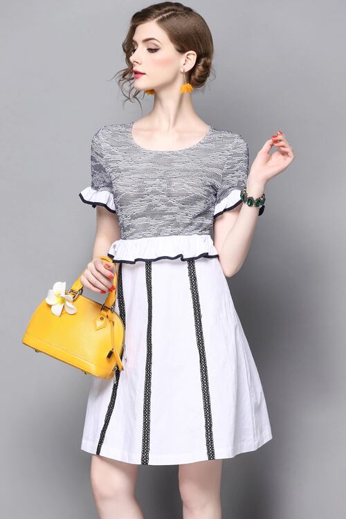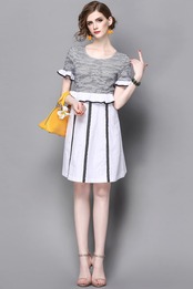 「大特価」 キュート 半袖 フリル 切替 スリム 2色 ワンピース
