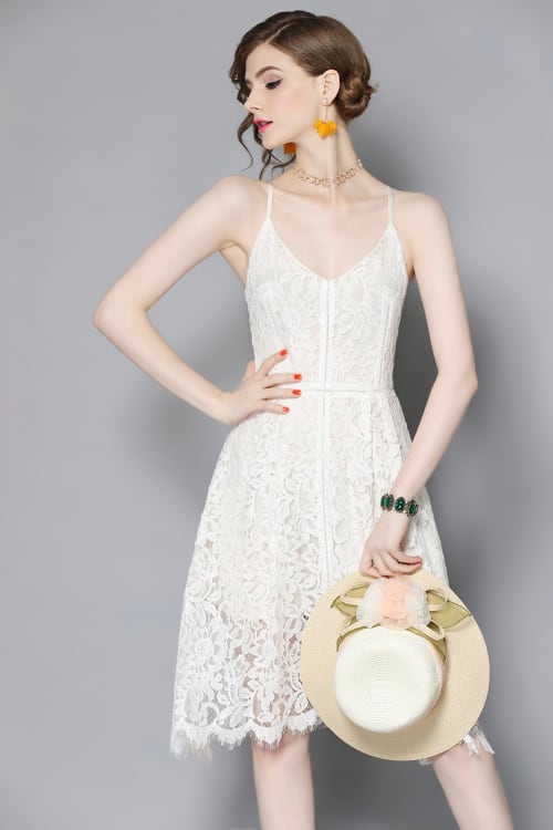 「大特価」 新作 キュート ノースリーブ レース 切替 ワンピース