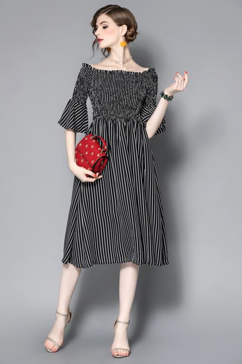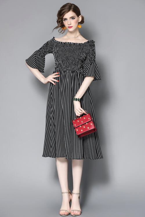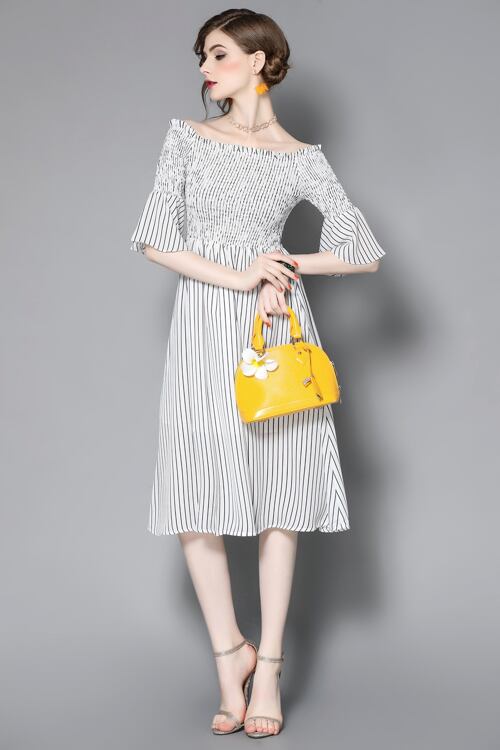 「大特価」 新作 キュート ストライプ 2色 オフショルダー ワンピース
