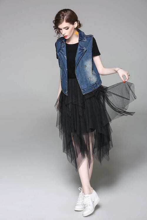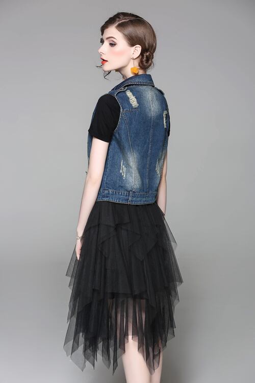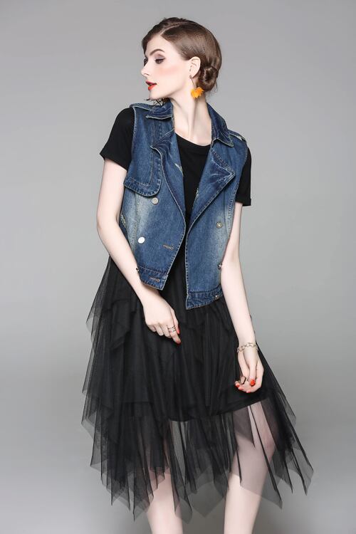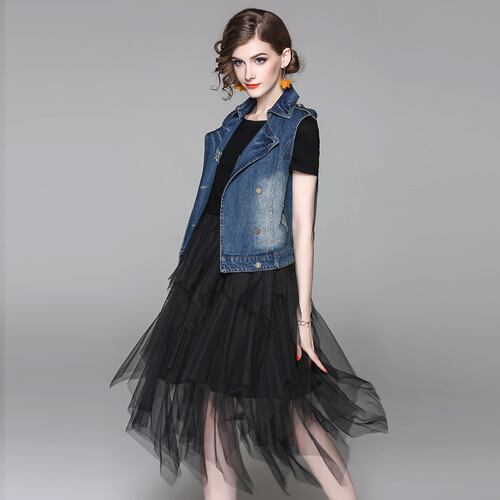 「大特価」 キュート デニム ベスト アシメドリーワンピース ツーピース