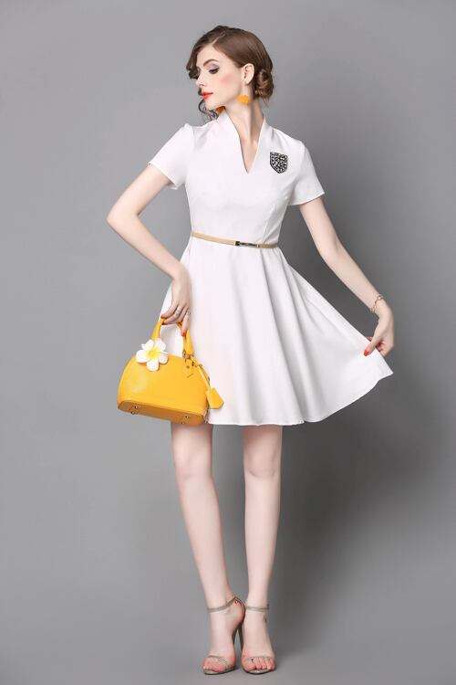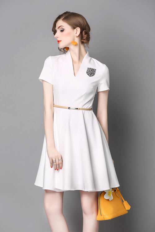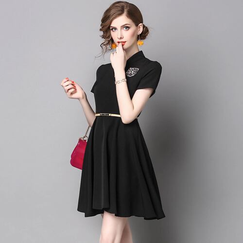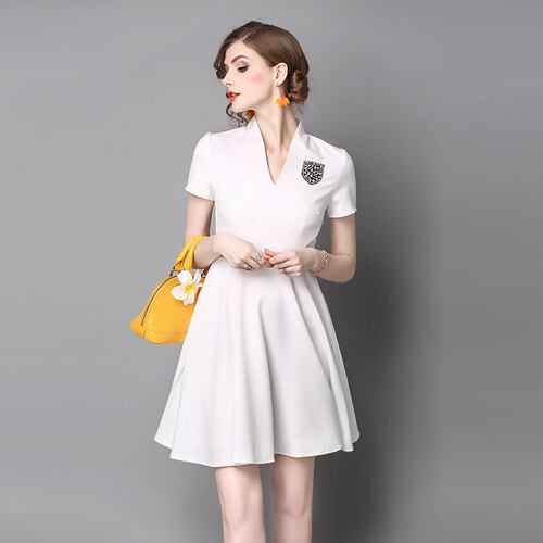 「大特価」 新作 モノカラー 半袖 Vネック スリム 3色 ワンピース