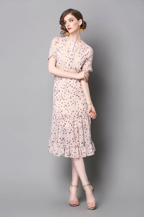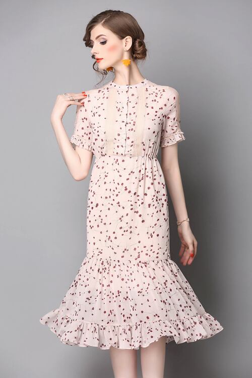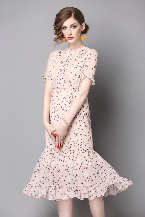 「大特価」 新作 半袖 プリント フレア ミディ丈 ワンピース