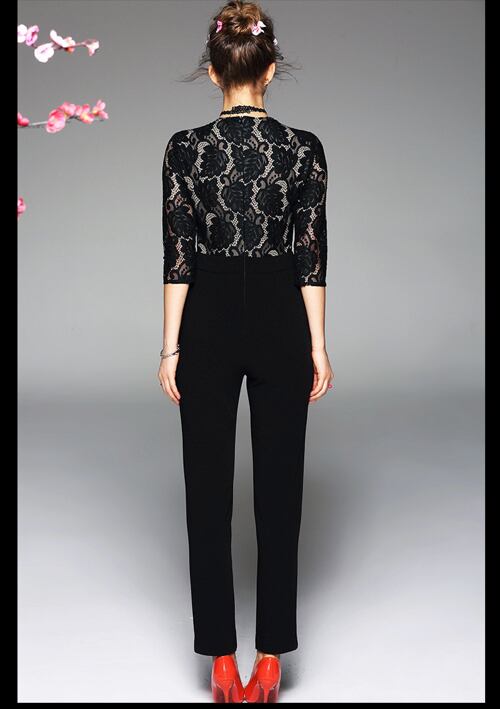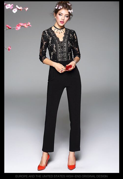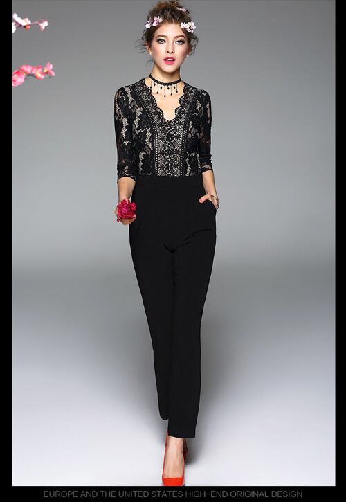 「大特価」 エレガンス レース 切替 7分袖 ロング オールインワン
