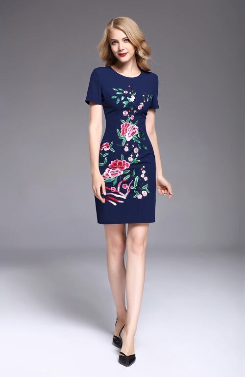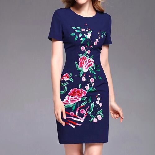 「大特価」 新作 半袖 エレガンス 刺繍 スリム ワンピース