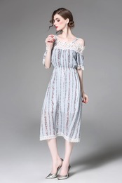「大特価」 キュート オフショルダー シフォン プリント ワンピース