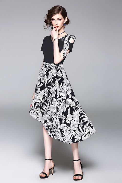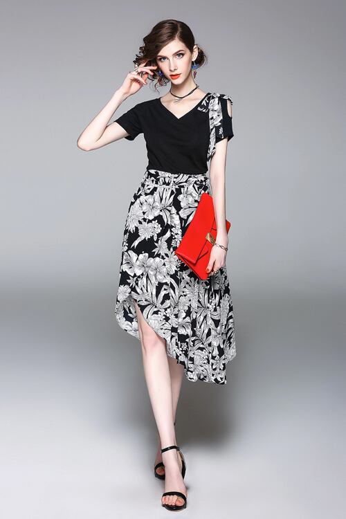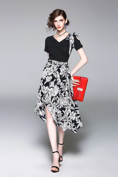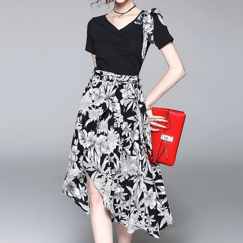 「大特価」 キュート Tシャツ スカート プリント リボン セットアップ