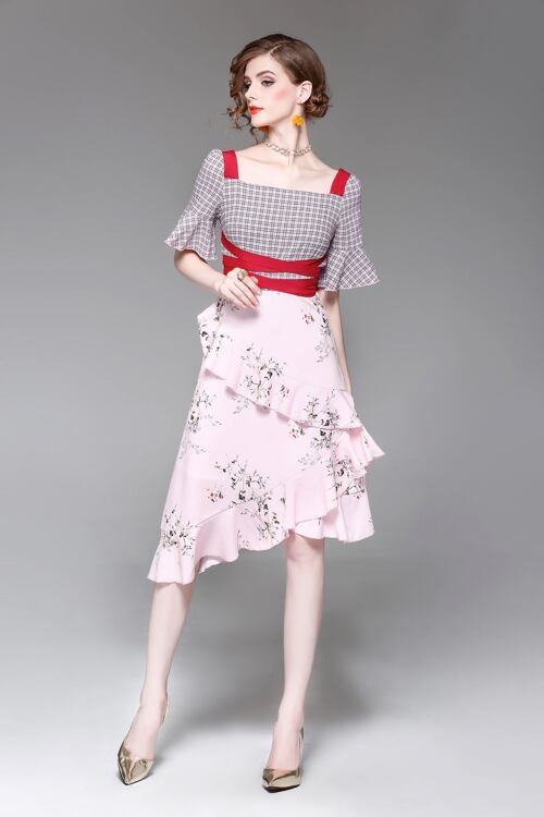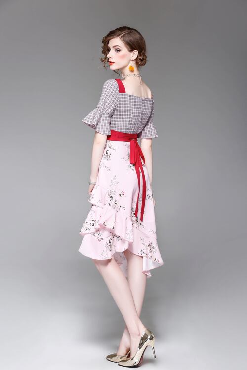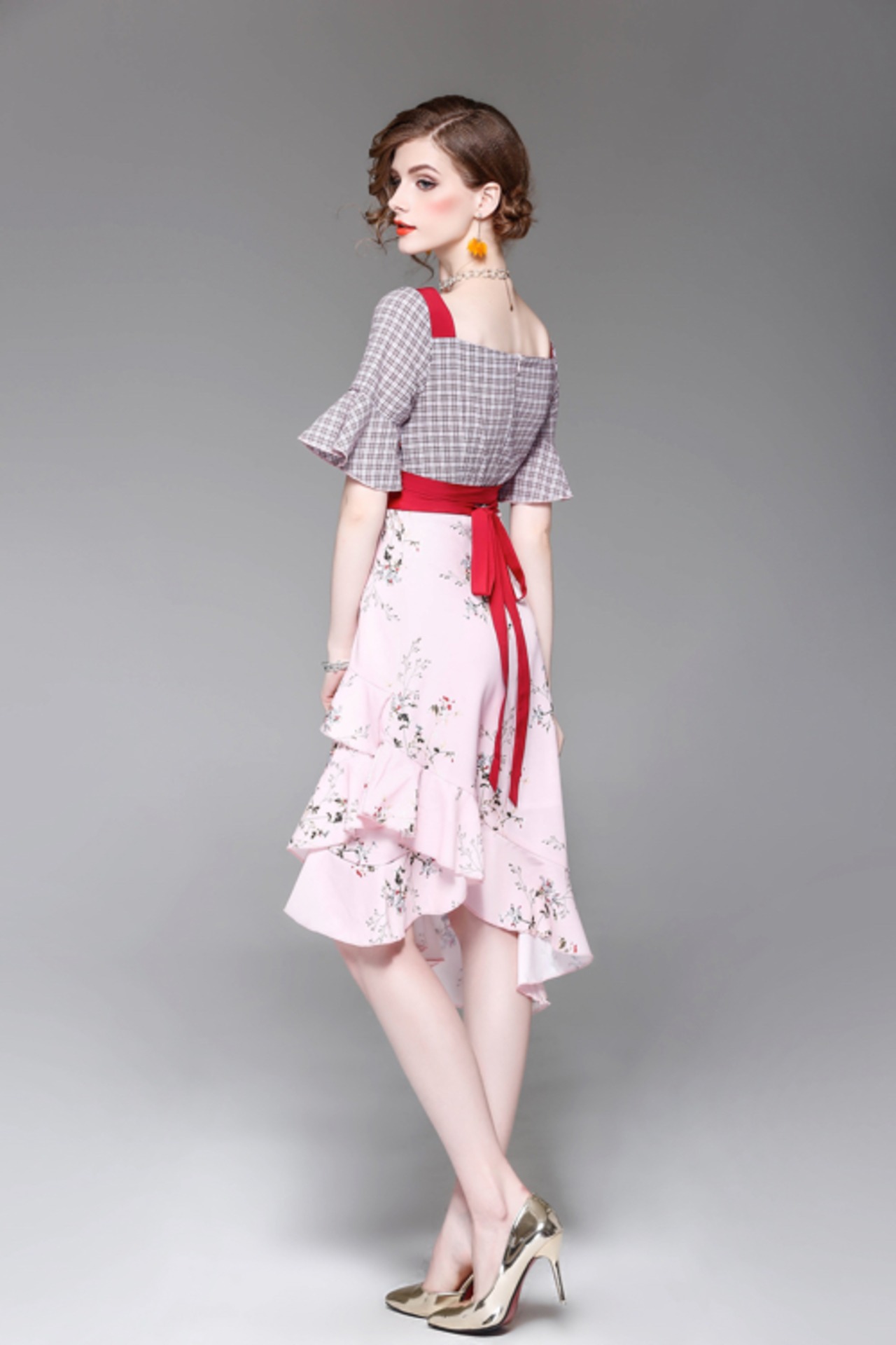 「大特価」 キュート 切替 フリル アシメドリー スリム ワンピース