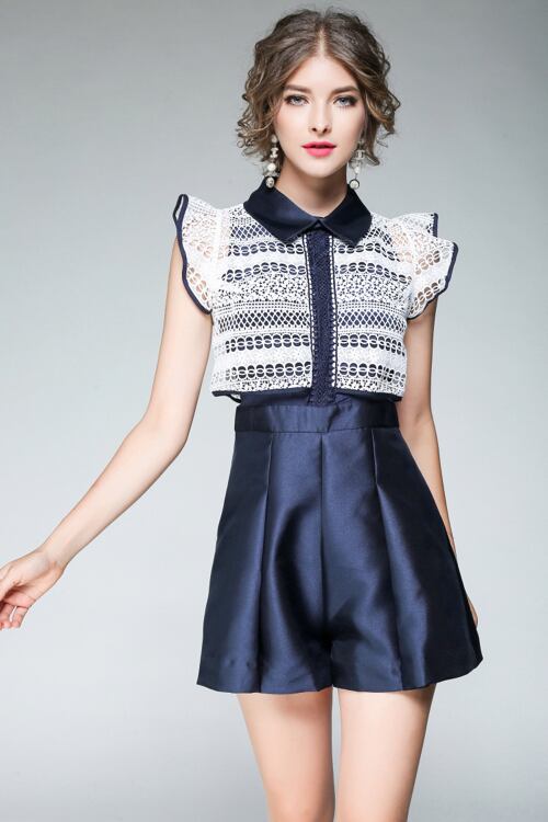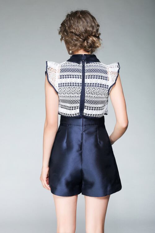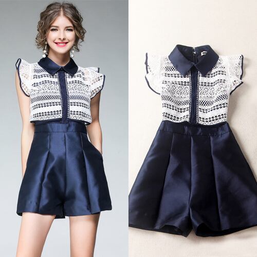 「大特価」 新作 バイカラー レース フリル キュート オールインワン