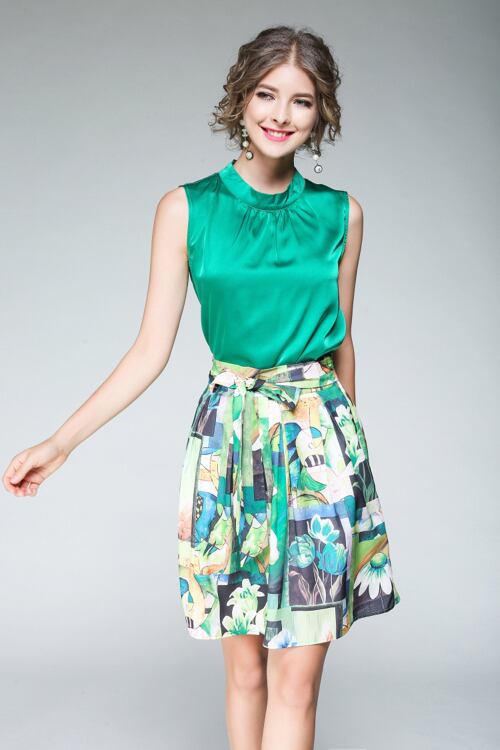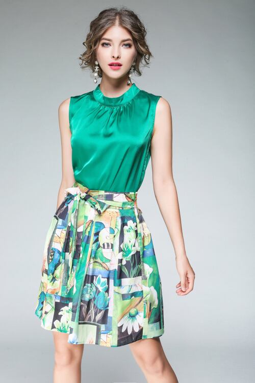 「大特価」 上品 シャツ スカート プリント ツーピース セットアップ