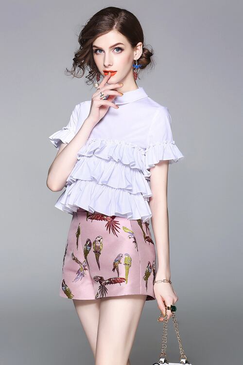 「大特価」 キュート フリル トップス パンツ ツーピース セットアップ