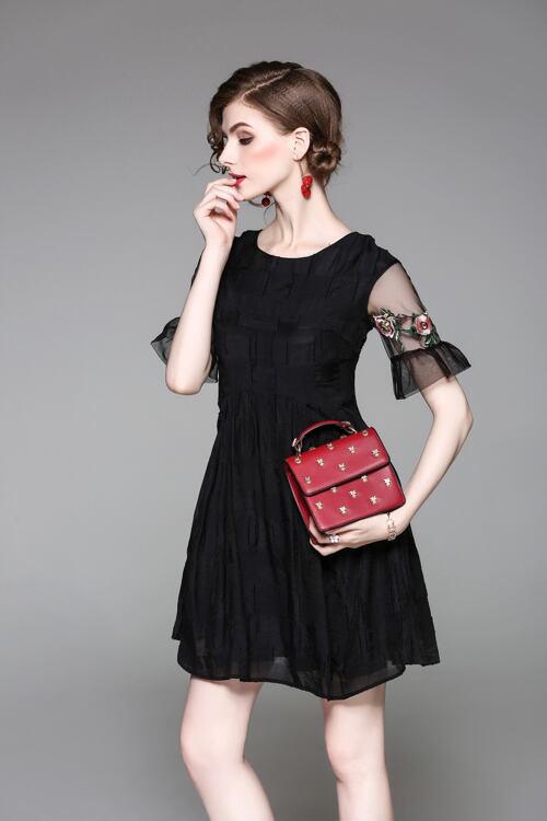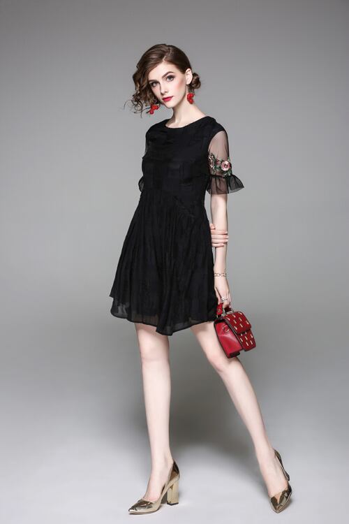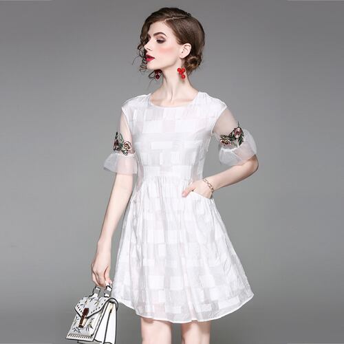「大特価」 新作 半袖 刺繍 スリム 2色 ワンピース